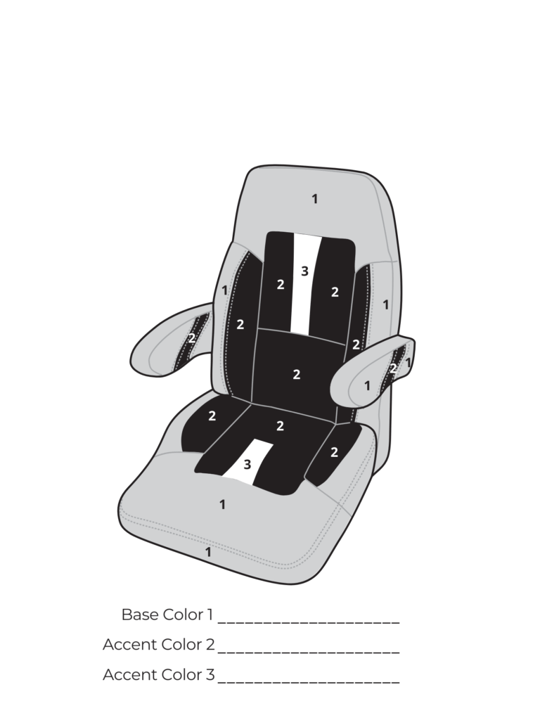 Design a seat that fits your style! Choose your custom colors for each section below: